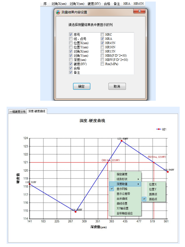 測量結果按路徑序列排列,生成相應的硬化層深度值及硬度變化曲線圖。 |